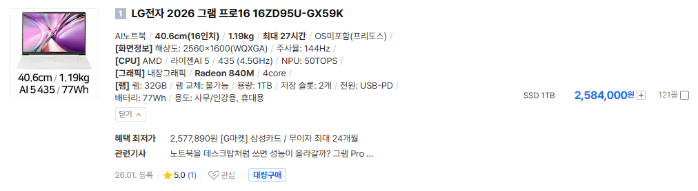 LG 2026 Gram Pro! 그램 사용할만 하죠~ 이건 사용후기좀 찾아보고 결정할 예정!